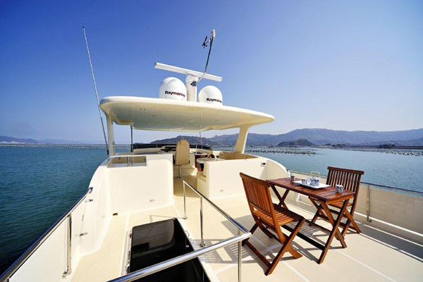 Rumpf, Steuerhaus, Radarbügel, Flybridge aus